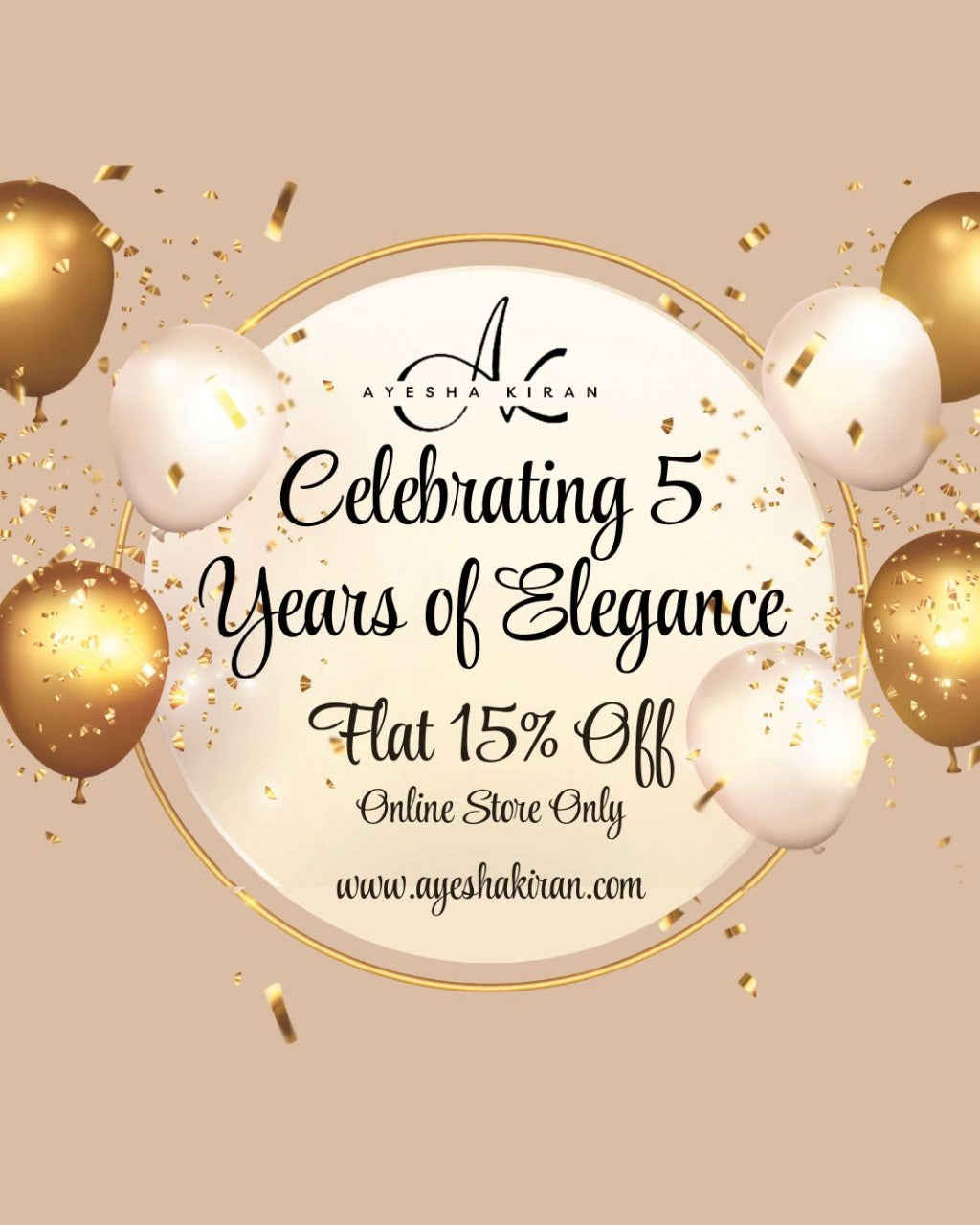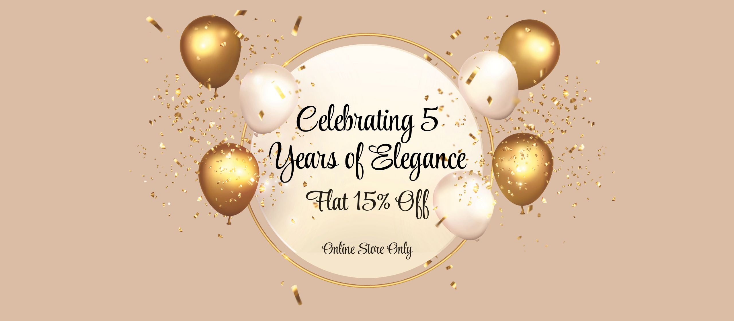 Celebrating 5 Years Of Elegance - Flat 15% off Shop Now